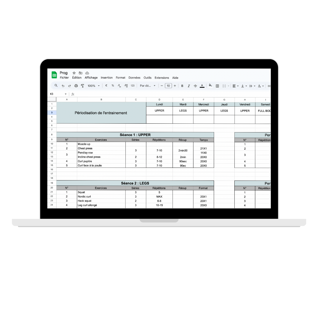 Une programmation individualisée et adaptée à 100% pour toi, en fonction de ton mode de vie, ta morphologie, tes blessures, tes contraintes etc.